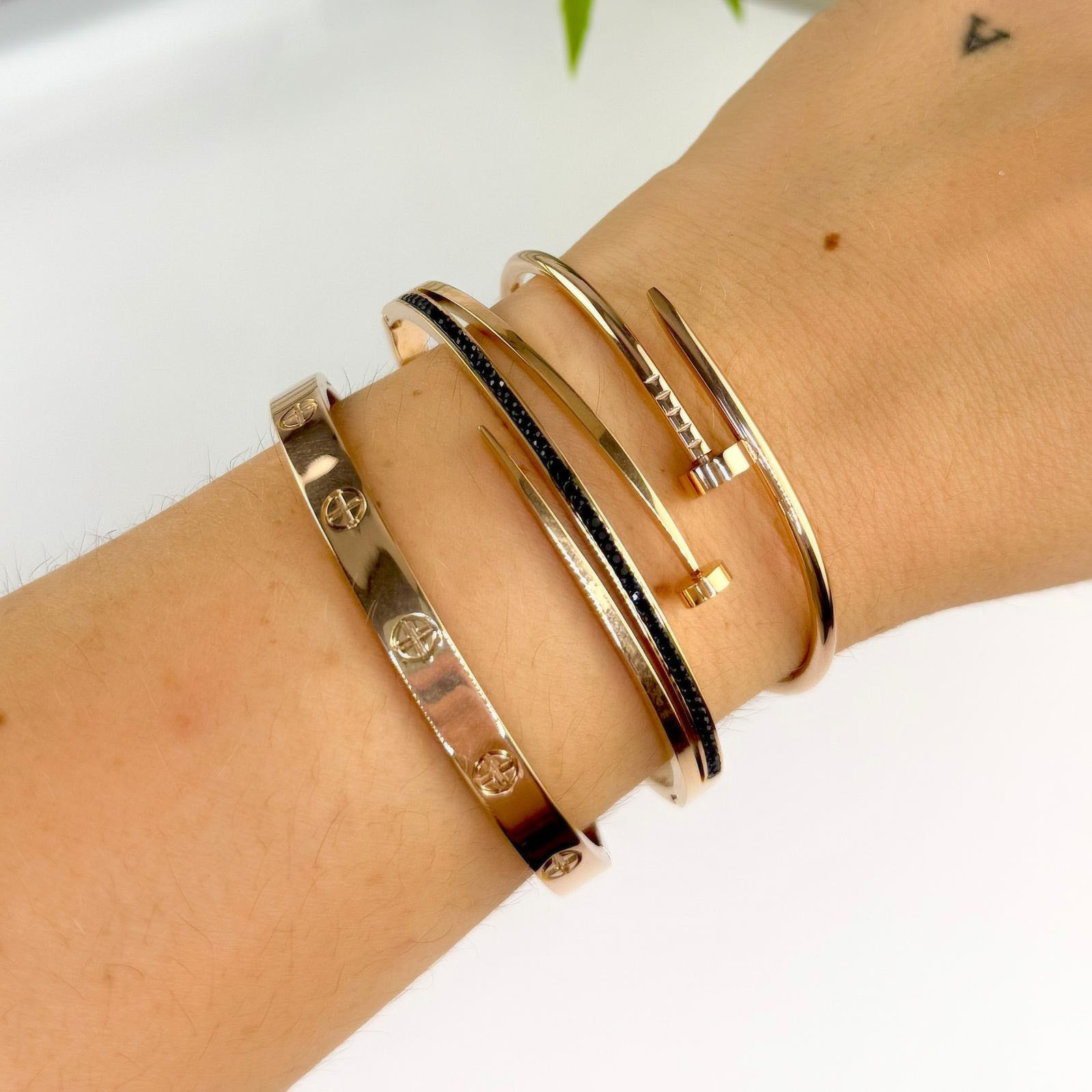 Materiál : Chirurgická oceľUrčené pre : ŽenyPovrchová úprava : Pozlátené ružovým zlatomDoplnok šperku : Zirkóny / ŠtrassFarba doplnku : ČiernaDĺžka náramku : 17 cmŠirka náramku : 4 mmDarčeková krabička : Bez krabičky- Instagram Photos