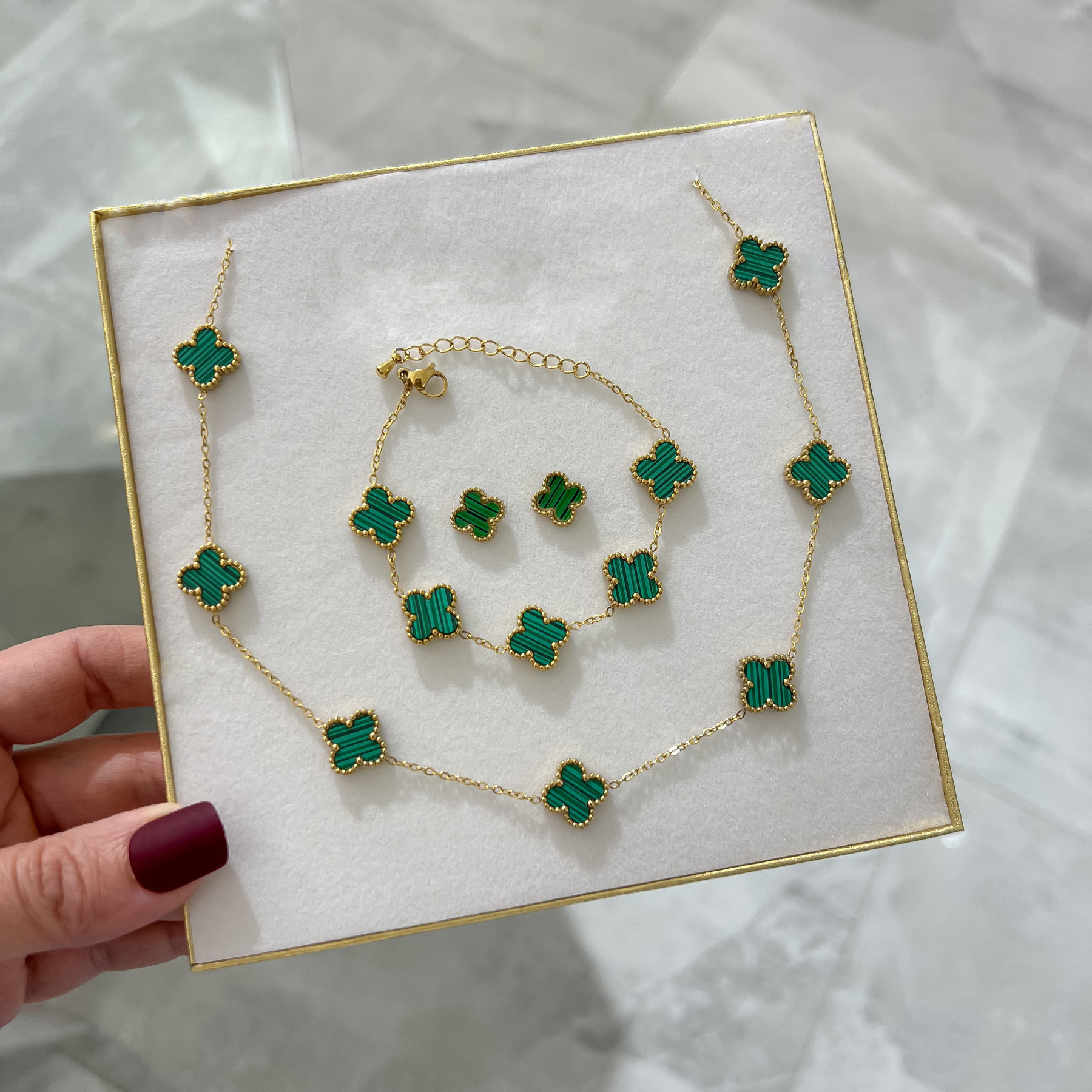 Materiál : Chirurgická oceľUrčené pre : ŽenyPovrchová úprava : Pozlátené žltým zlatomDĺžka retiazky : 46 cmHrúbka retiazky : 1,3 mmDĺžka náramku : 20 cmŠirka náramku : 1 mm, 11 mmDĺžka náušnice : 11 mmŠirka náušnice : 11 mmTyp náušnic : NapichovacieDĺžka prívesku : 13 mmDarčeková krabička : Dodávané v dar. krabičke- Instagram Photos
